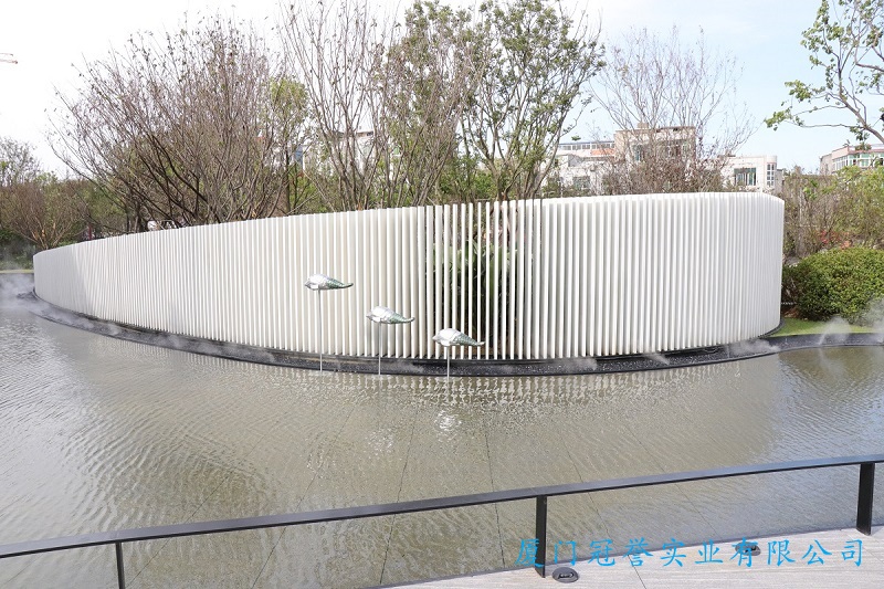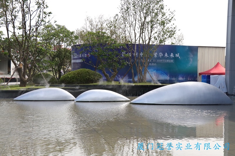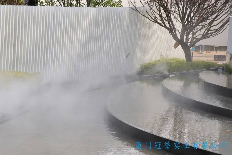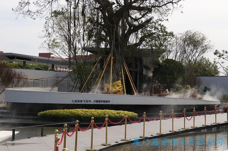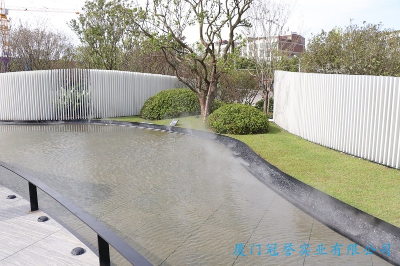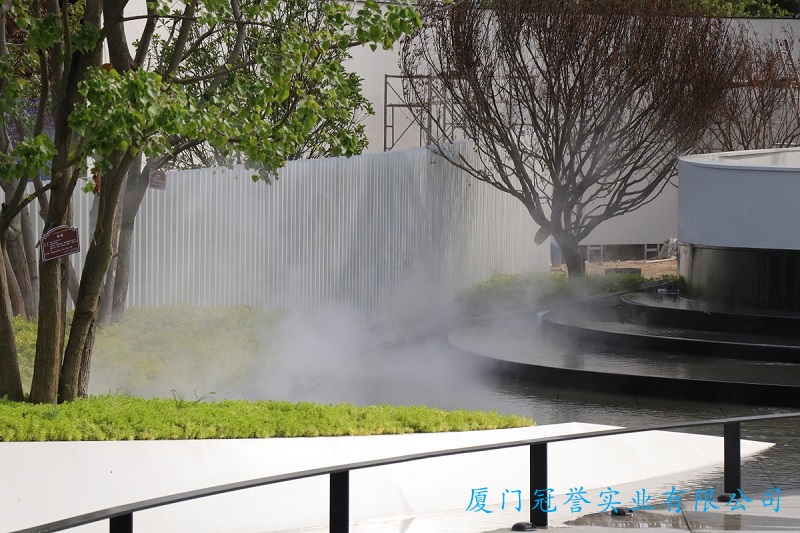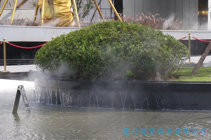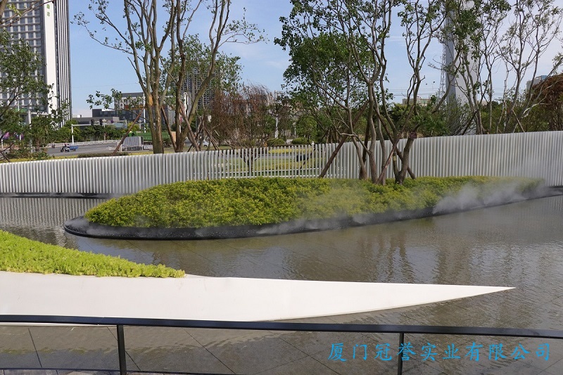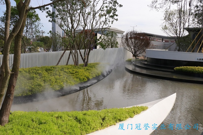 莆田琇屿青城·铜锣湾中心喷雾工程2020年6月6日开工建设于2020年7月10号竣工并验收移交甲方使用,该景观喷雾系统运行时,整个售楼部绿化景观水池顿时四周泛起云雾落隐落现像云端秘境,该景观喷雾项目借森林之灵,提取“山林”之精髓,“云端”之秘境,置人与林,置城与林,意在打造“城市森林”自然景观,让久居凡尘的人们仿佛置身于城市森林里生生不息,并随着四季更替繁衍、起伏、峥嵘。