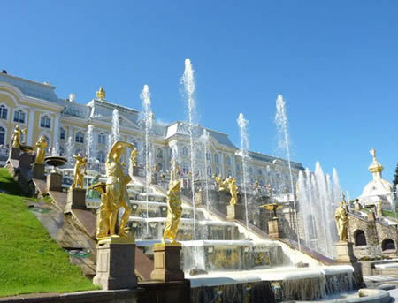 2、圣彼得堡夏宫位于波罗的海的芬兰海湾,是彼得大帝于1710年修建完成,拥有奢华的建筑及配饰,为历代沙皇的郊外别墅。夏宫最主要的景观是高达20米的大瀑布喷泉。激越的泉水从狮子口中喷涌而出,狮子口被大力士粗壮的双手掰开,泉水沿着夏宫花园流向的芬兰海湾。