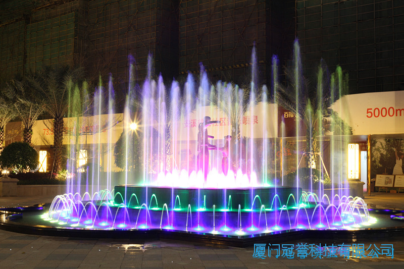 本项目音乐喷泉由厦门金年会在线登陆公司设计并建造,音乐喷泉通过程序控制系统和音乐控制系统,对音乐进行编程,使喷泉造型与音乐旋律、灯光同步结合而产生千变万化的水景,反映音乐内涵及主题。音乐喷泉声、光、色、形俱美,如舞台上的表演激起人们沉思雀跃的情绪而得到水美的艺术享受。