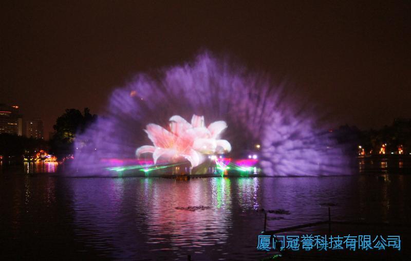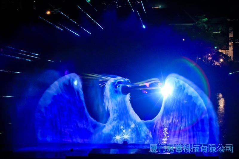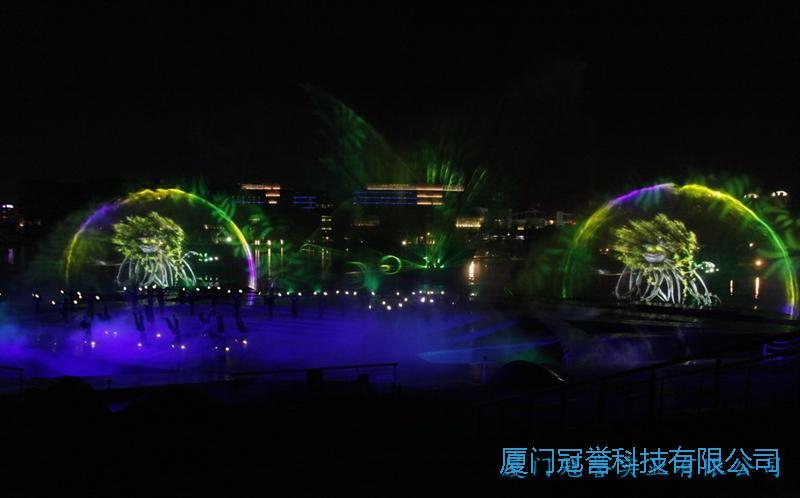 激光水幕电影主要由水幕发生器、投影机、激光组成。水幕高达8-20余米,宽15-50米,各种VCD光盘或水幕专用影片,均可在水幕上播放,影视效果奇特、新颖并是极佳的广告宣传工具,各种广场及阔旷的水面均可安装水幕电影。