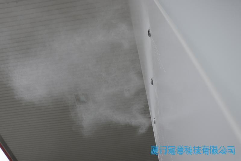 喷雾降温是应用水对大自然气候调节的原理采用雾化降温的方式,以极细微物化状态喷出,雾滴在空气中弥散,水雾在汽化过程中吸收大量的热量,从而达到快速降温的作用。同时与流动的空气进行热湿交换,水雾粒子吸收空气的热量(或显热)、汽化、蒸发,使空气的湿度增加,实现对空气的加湿处理。同时可以去除空气杂质与粉尘,加速空气流动,中和空气中过量的正离子,增加负离子在空气中的含量,使空气清新怡人,极大地营造和改善人们工作生活环境。
